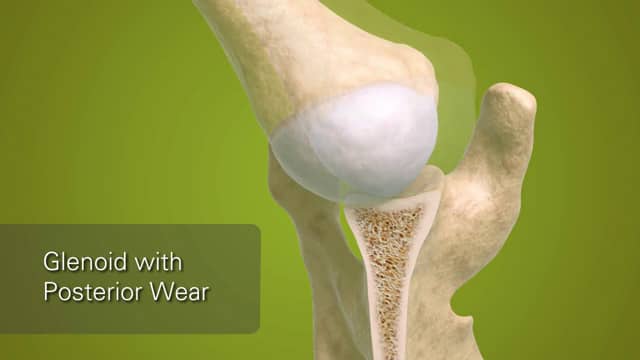 Brief animation that shows implantation of Equinoxe glenoid components used to repair posterior wear.